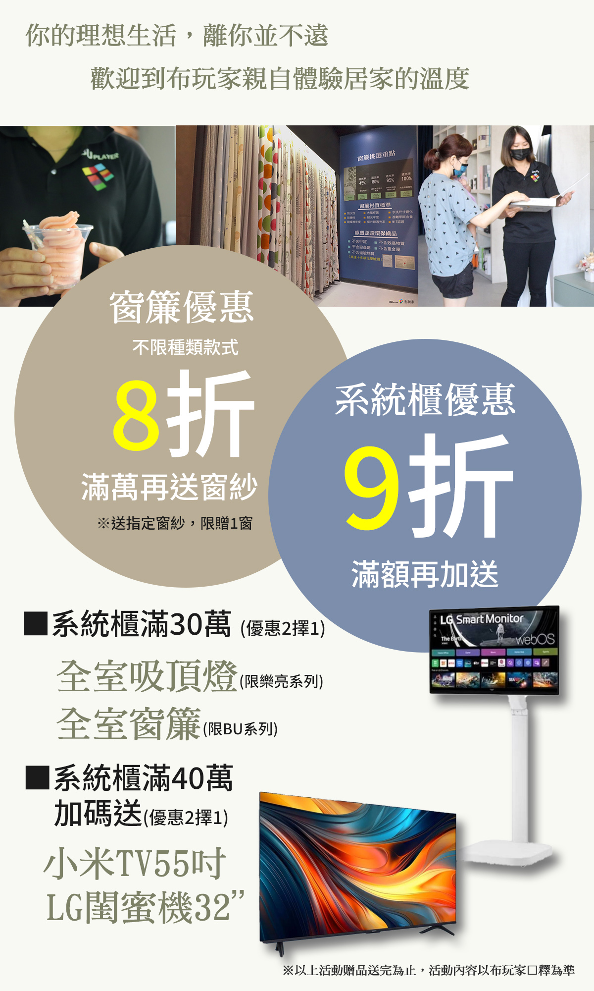 ※小米電視為XIAOMI55型4K智慧顯示器,LG閨蜜機為32吋FHD STA32F(送完為止或更換同級贈品)